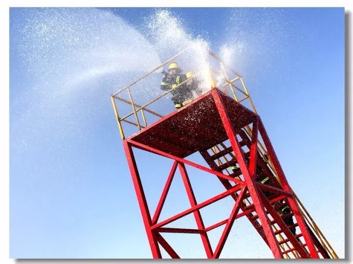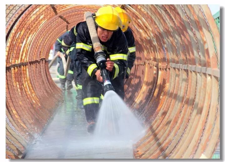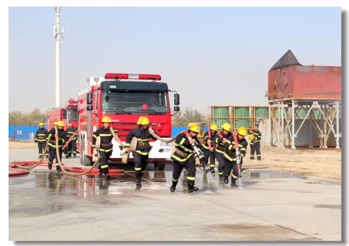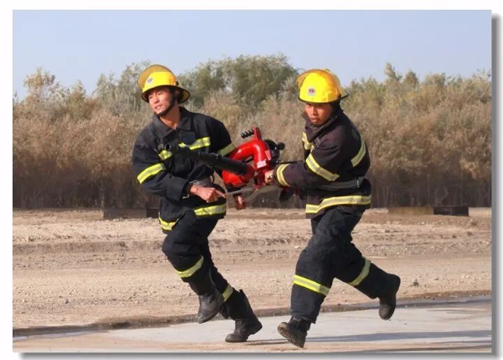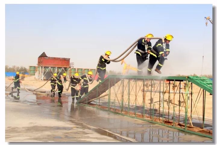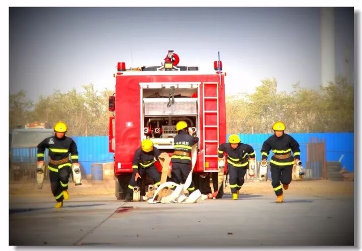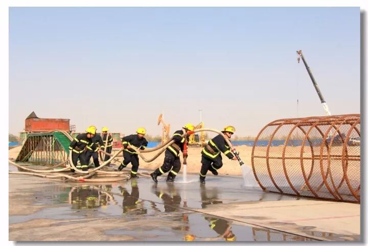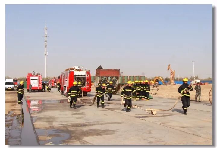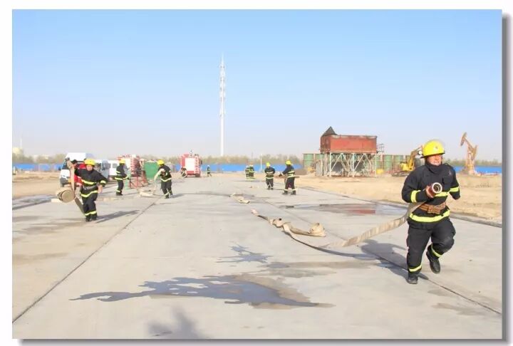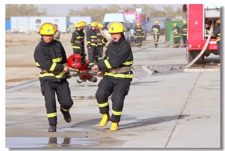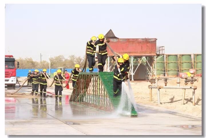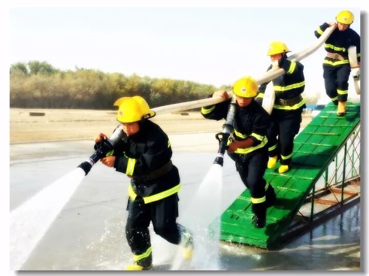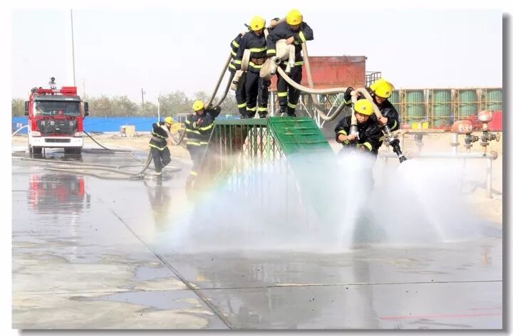 班组协作,移动炮打靶操,是灭火抢险的基础;吸水管连接操,是消防车补水的关健;百米双干线水带连接操,是火场远距离供水的保障;你看消防战士翻跃板障,飞奔过独木桥,负重穿越狭窄空间,展现速度与激情;二节拉梯、挂钩梯攀登操,练就"登天"的本领;化工装置灭火操,过桥,登高,射水,一气呵成保证打胜仗。消防车、训练塔,水里来、火里去,不负戎装戍油田!