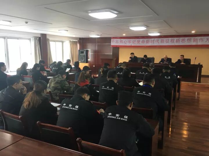 11月3日下午,中安保新疆实业有限公司召开全体会议,学习讨论党的十九大报告。中安保新疆实业有限公司董事长、党总支书记吴晓海主持会议并发言,党总支副书记赵鹏、行政总监杨健、保安公司经理马建新参加会议。十九大报告是一篇具有划时代、里程碑意义的马克思主义光辉文献,要认真学习、深刻领会十九大报告精神实质,不忘初心、牢记使命,迈进新时代、开启新征程、续写新篇章。